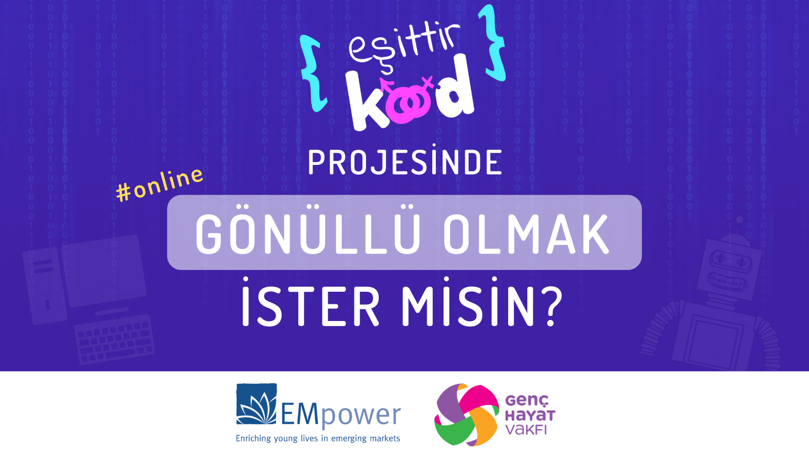 Genç Hayat Vakfı tarafından EMpower Vakfı desteğiyle 2018 yılından beri hayata geçirilen Eşittir Kod projesi; 11-17 yaş grubundan öğrencileri, Eşittir Kod projesi; 11-17 yaş grubundan öğrencileri, potansiyellerine ve ilgilerine göre geleceklerini şekillendirmeleri yönünde teşvik ediyor. Uzun vadede teknoloji ve bilişim sektöründe çalışan kadın sayısını arttırmayı ve özellikle kız öğrencilerin bilişim alanında özgüvenlerini yükseltmeyi hedefliyor.